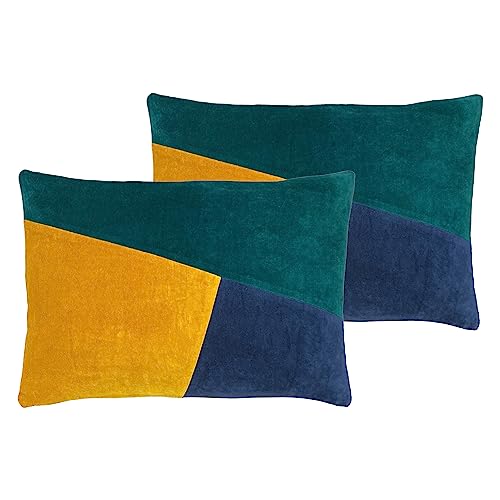 Ugn Morella polyesterfylld kudde, bomull, smaragd/ockra/marinblå
