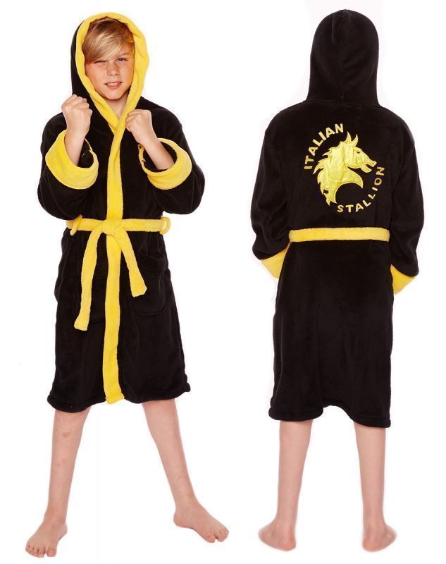 Morgenstern Morgonrock Barn Tonåringar Frotte Sammet Huva 100% Bomull 170-176 cm 15-16 ÅR Svart