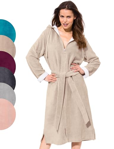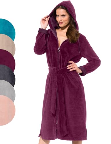 Undercover dam frottéhandduk 100 % bomull dragkedja genom huva eller icke huva morgonrock torkande badrock, vin, 40-42