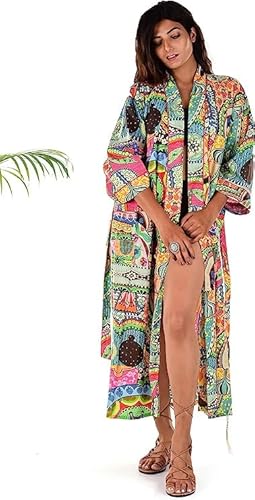 Blommigt tryck lång bomull strandkimono handgjord täcka upp badrockar kvinnor morgonrock nattmorgonrock, vintage, brudtärna, boho, brudrock