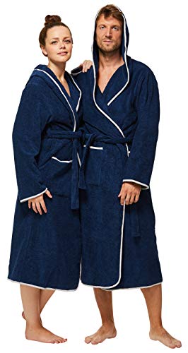 CelinaTex 5001170 frottéhandduk badrock med huva bomull bastuklänning för män och kvinnor kvalitet morgonrock fluffig gosig Öko-Tex Montana badrock med huva storlek L blå