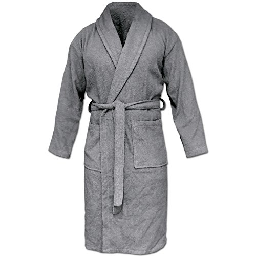 HOMELEVEL Pique badrock resebadrock 100 % bomull för kvinnor och män, morgonrock, kimono, basturock, resa, morgonkjol, piké, våffelpiké, kvinnor, män, GRÅ, XXL