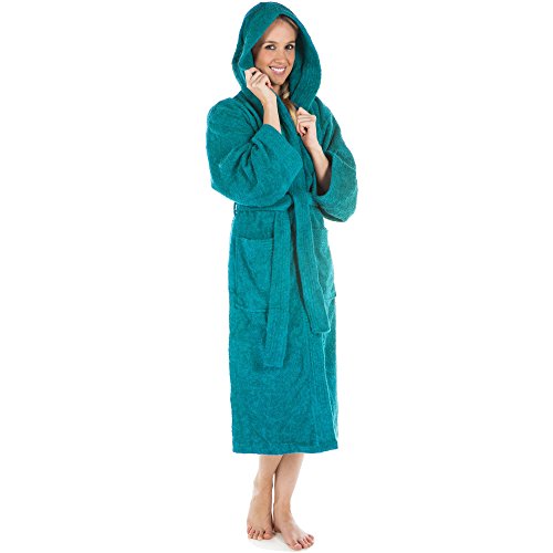 CelinaTex 5001175 frottéhandduk badrock med huva bomull bastuklänning för män och kvinnor kvalitet morgonrock fluffig gosig Öko-Tex Montana huva badrock storlek M turkos