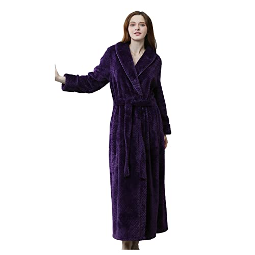 Extra lång badrock för kvinnor i bomull – lång varm morgonrock vinter, mjuk basturock med tråd, basturock, mikrofiber, badrockar, herrbadrockar, loungewear-badrock för kvinnor, violett, L