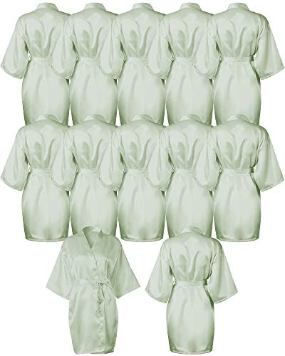 12 st kimono morgonrock för kvinnor silkeslen brud brudtärna rock lätt kort satin rock för bröllop brud födelsedagsfest, ljusgrön, One Size