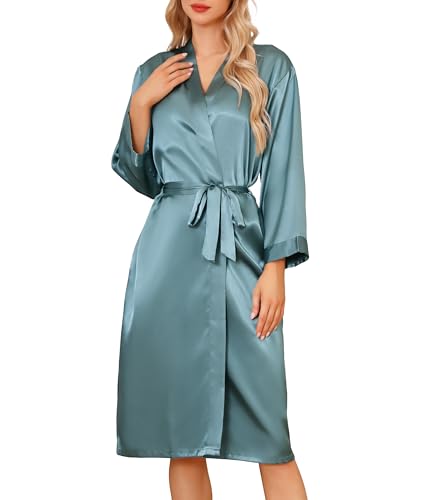 Sopesil satinbadrock för kvinnor, unisex, satin, badrock, kimono, v-ringad, morgonrock för spa, hem och hotell S–XXL, Grågrön, M