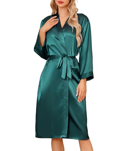 Sopesil satinbadrock för kvinnor, unisex, satin, badrock, kimono, v-ringad, morgonrock för spa, hem och hotell S–XXL, Mörkgrön, M