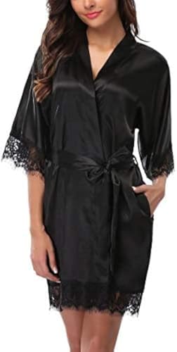 JPHCHSC Kimono, morgonrock, satin, rock, silke, kort morgonrock för kvinnor, siden, kimono för brud och brudtärna, festkläder, 39, Svart, S