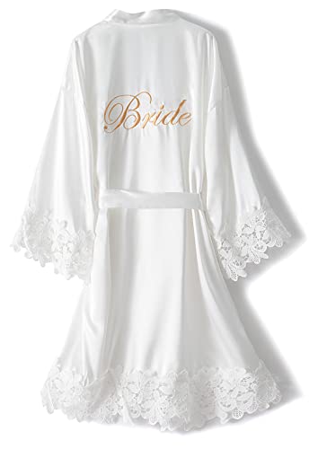 JPHCHSC Kimono, morgonrock, satin, rock, silke, kort morgonrock för kvinnor, siden, kimono för brud och brudtärna, festkläder, 39, Brud vit, S