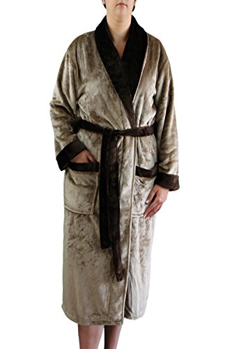 Gözze – unisex badrock/morgonrock med sjalkrage, sidenkänsla, 100% mikrofiber, 330 g/m², storlek XXL – brungrå