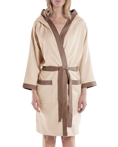 CALEFFI - Herr Dam Badrock Mikrofiber Mjuk Lätt Absorberande Morgonrock Kvinnor Män Snabbtorkning, Badrock Mikrofiber Huva Fickor Bälte med Öglor och Krok + Koordinerad Väska, Naturlig, XXL