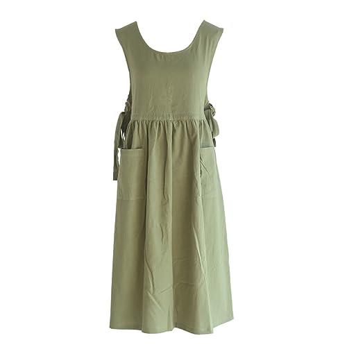 CHAILIQIANGG Damförkläde stor storlek, tvättat linne bomullsförkläde med 2 fickor enfärgad japan köksförkläde dam väst morgonrock justerbart arbetsförkläde för, Grön, one size