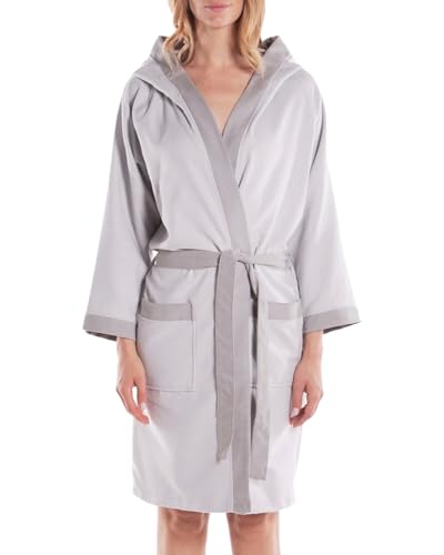CALEFFI - Herr Dam Badrock Mikrofiber Mjuk Lätt Absorberande Morgonrock Kvinnor Män Snabbtorkning, Badrock Mikrofiber Huva Fickor Bälte med Öglor och Krok + Koordinerad Väska, Silverton, M