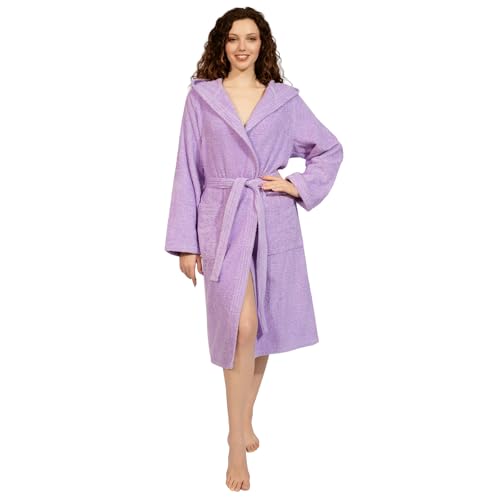 nice homeit Unisex morgonrock för kvinnor/män med huva – tillverkad av 100 % OEKO-TEX bomullssvamp, mjuk, absorberande, – italiensk design, Lila, M