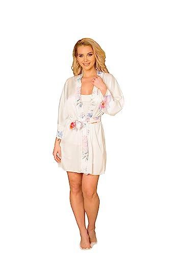 Yemmert Damkimono morgonrockar silkeslen satin långärmad blommig kimono morgonrock för kvinnor, Svart, 16-20