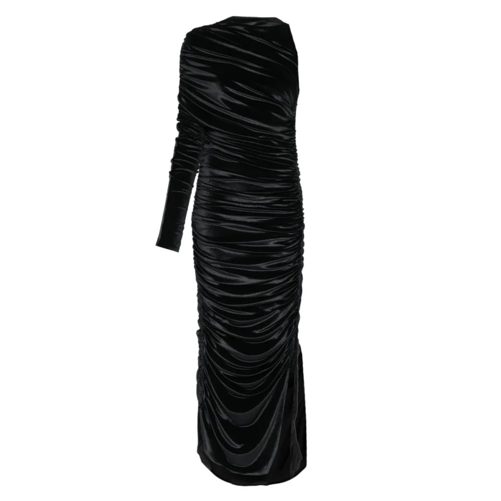 Mugler, Klänningar , Dam, XS, Svart Asymmetrisk Sammet Morgonrock