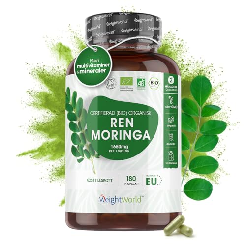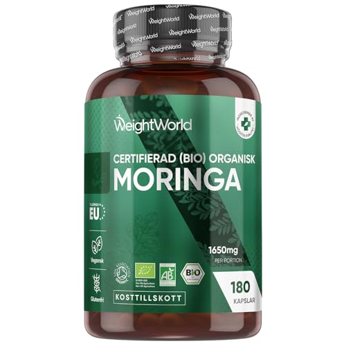 Ekologiska Moringa kapslar - 1650mg Moringa Oleifera Powder - 180 Veganska Kapslar för 2 Månader - Ekologisk Certifierad Superfood - 3 Kapslar Dagligen - Testade Ingredienser - WeightWorld