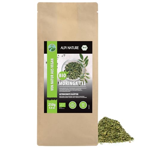 Alpi Nature Ekologisk Moringa Te (250g) - Torkade Blad från Kontrollerad Odling, 100 Procent Naturliga, Utan Tillsatser