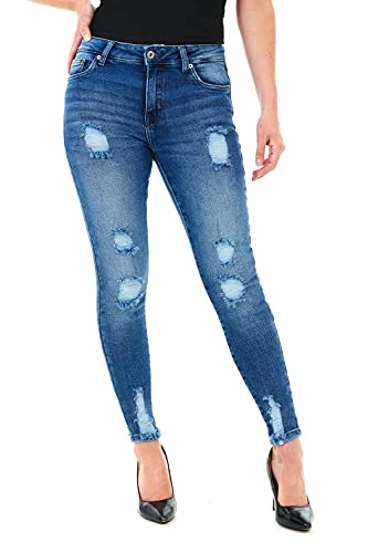 M17 Dam 5056242842200 damer rippade denim jeans Skinny Fit klassiska casual bomull stretchiga byxor byxor med fickor (28 W, mörkblå tvätt)