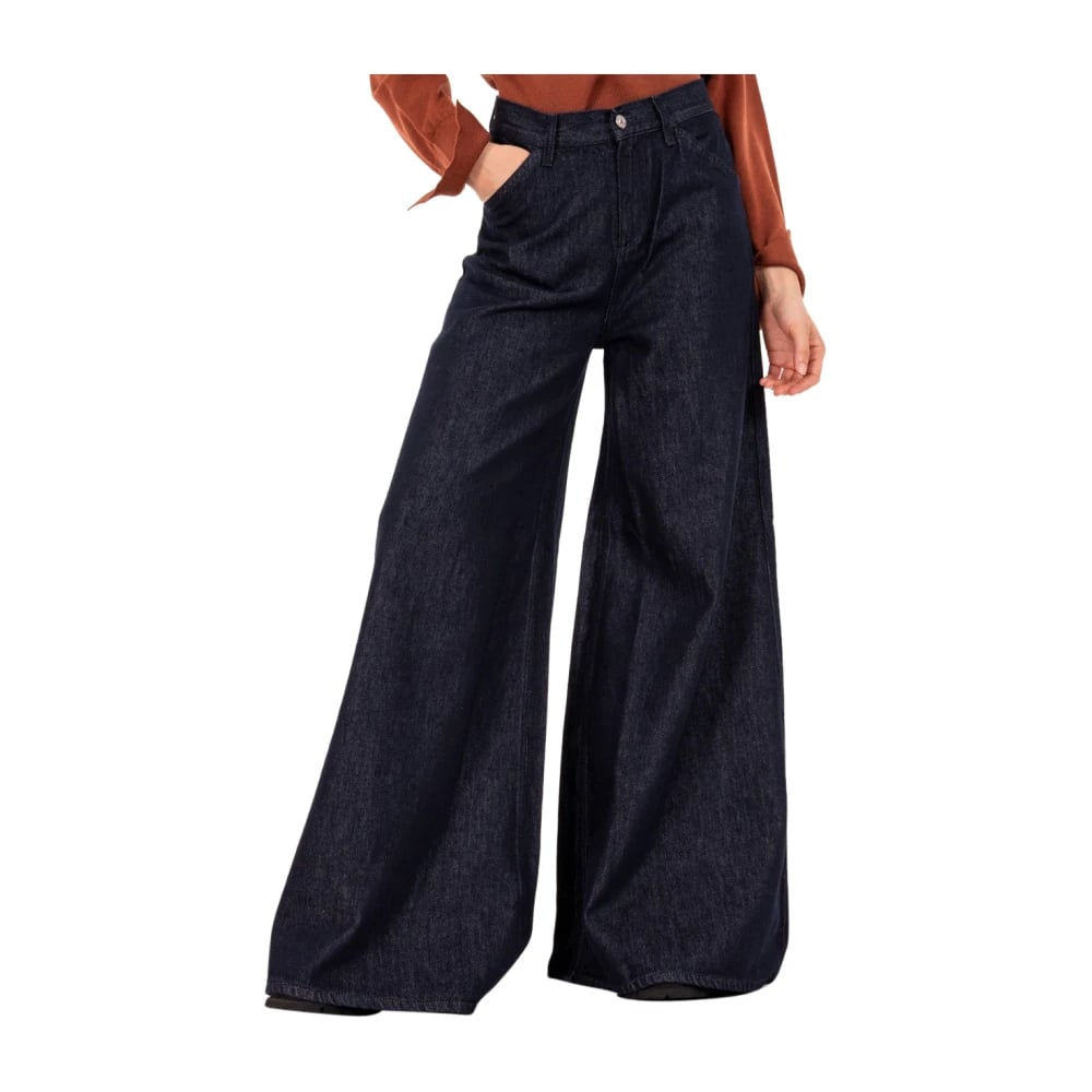 Love Moschino Wide Leg with Skate Back Tag Casual Byxor Dam, Mörkblå Denim, 26