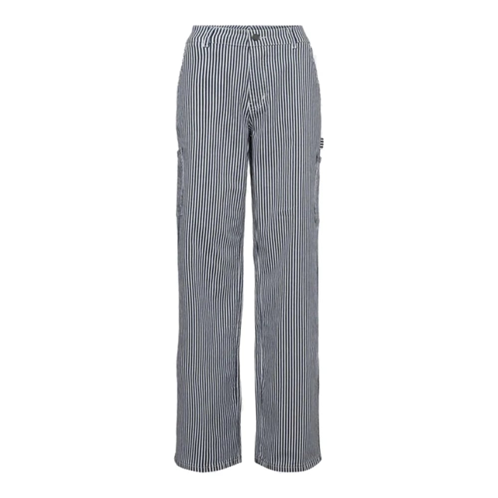 Sofie Schnoor, Byxor , Dam, XS, Bomull, Mörkblå Randig Cargo Byxor