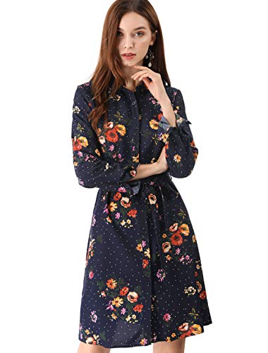 Allegra K Dam A linje knytbälte prickig blommor miniklänning klänning, Mörkblå, 42