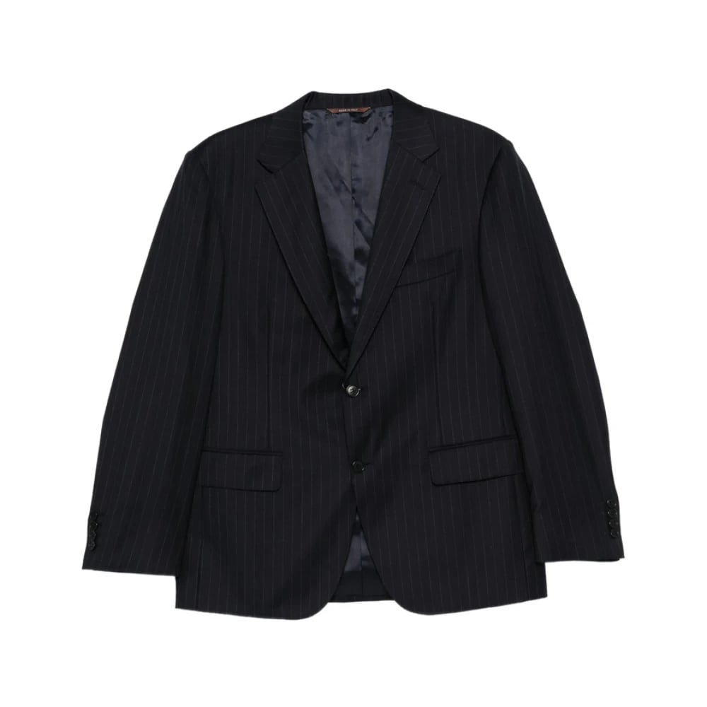 Canali, Jackor , Herr, L, Mörkblå Pinstripe Tvåknäpps Kostym