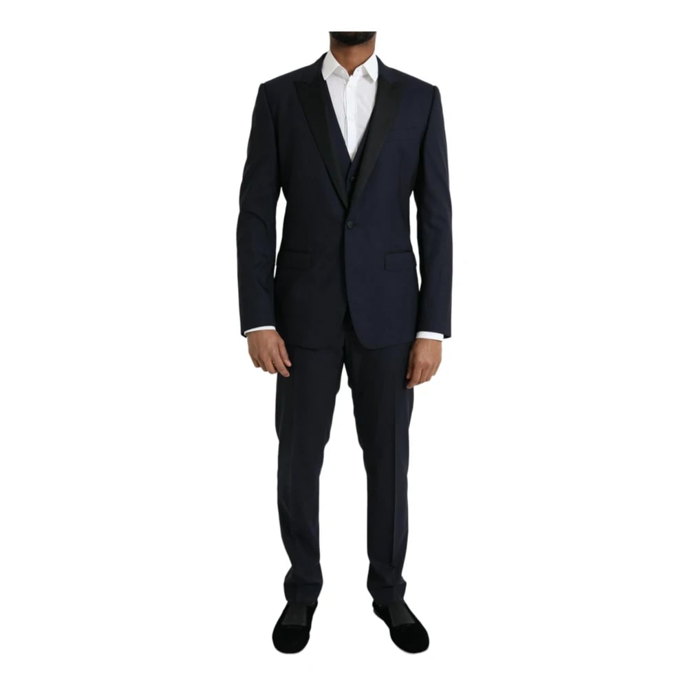 Dolce & Gabbana, Kostymer , Herr, L, Polyester, Mörkblå Ull 3-Dels Kostym