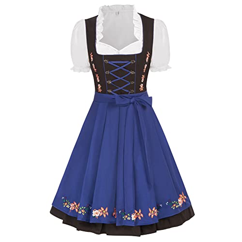 JASAMBAC Dirndl 3-delad Oktoberfest Dirndl-traditionell klänning, dirndl-klänningar, karneval, oktoberfest, fest, kostym, Mörkblå, S