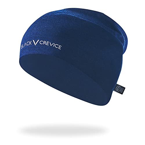 Black Crevice Merino Beanie I snygg one Size mössa I högkvalitativ unisex vintermössa av 70% merino & 30% polyester I unisex mössa med hög I One Size stickad mössa, Mörkblå, En Storlek