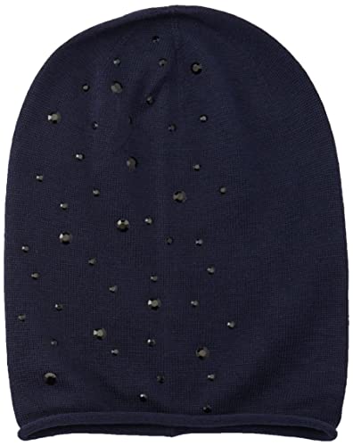 VIVISENCE Dambasker elegant vintermössa, varm och mysig huvudbonad på vintern och hösten, varm, tjock stickad mössa, klassisk mössa för kvinnor, tillverkad i EU, Mörkblå, one size