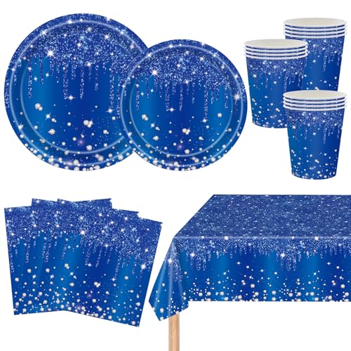 Nkaiso Festservis 96 st mörkblå fest dekoration flicka Dambini födelsedag festtillbehör set inkluderar engångstallrikar party muggar servetter -24 gäster