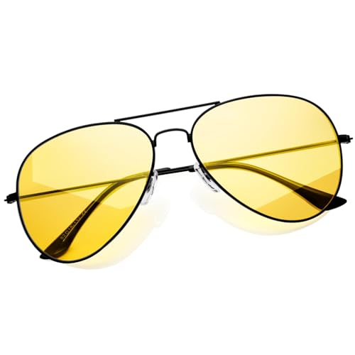 KANASTAL Retro Stora Dubbla Bro Natt Glasögon Kör för Män och Kvinnor, Classic Lätt Metall Ram UV400 Glasögon Natt, Matt Svart Ram Night Driving Glasses för Körning Fiske