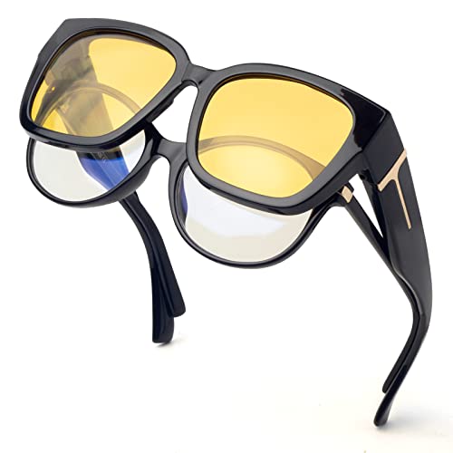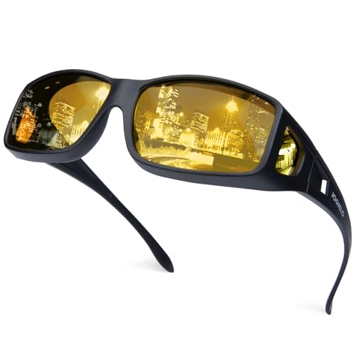 Boolavard 2-pack överdragna mörkerglasögon för bilförare, för glasögonhållare, tonade polariserande glas, enligt ISO-standard, svart/gul, Gul, svartgul