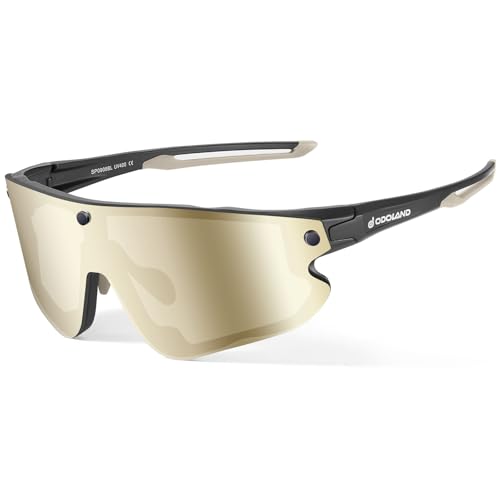 Odoland Polariserade sportsolglasögon, svart ram med guldfärgade glas, utbytbara svarta glas och mörkerglasögon