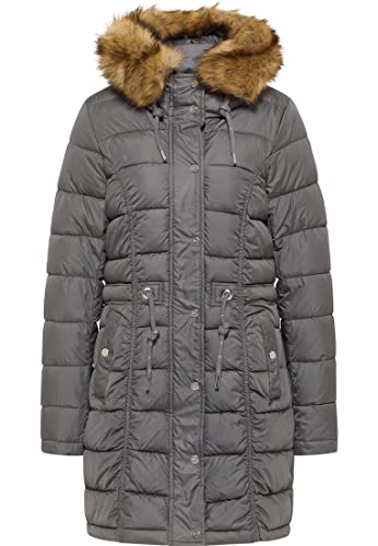 faina Quiltad kappa med fuskpäls dam 29017902, Mörkgrå, M