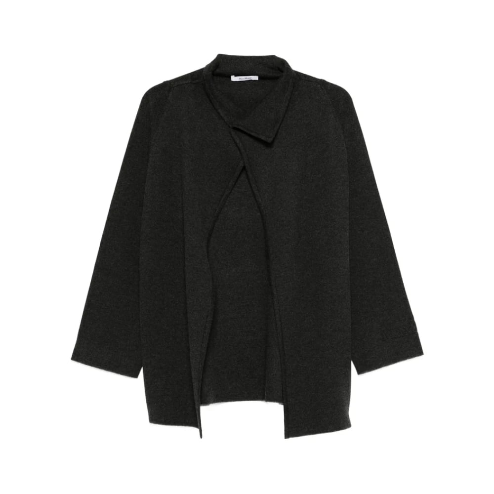 Max Mara, Jackor , Dam, S, Mörkgrå Asymmetrisk Krage Kappa
