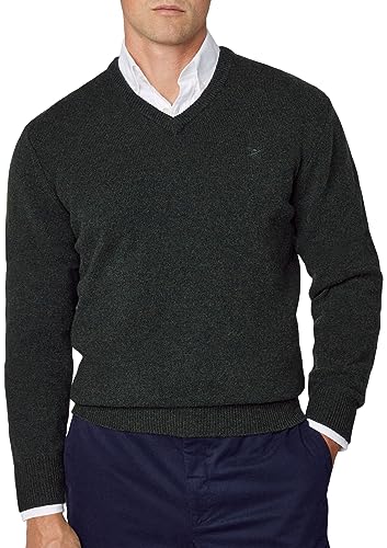Hackett London herr lammull v-ringad pullover tröja, Grön (mörkgrön), XXL