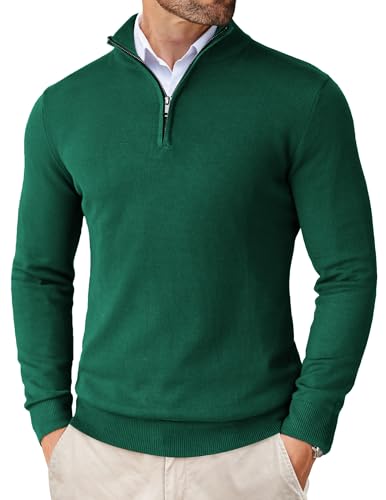 COOFANDY tröja herr 1/4 dragkedja hals polotröja turtleneck stickad tröja finstickad tröja vintertröja långärmad lätt arbetströja, Mörkgrön, XL