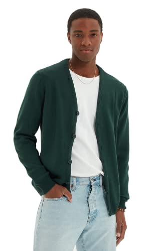 Trendyol Herr herr ung vanlig standard V-ringad vävd cardigan tröja, mörkgrön, M, Mörkgrön, M