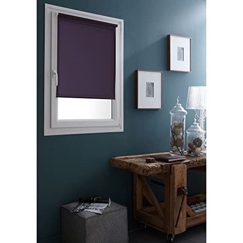 MADECOSTORE Rullgardin mörkläggande lätt rulle enfärgad lila tyg - L70 x H190cm - ingen borrning