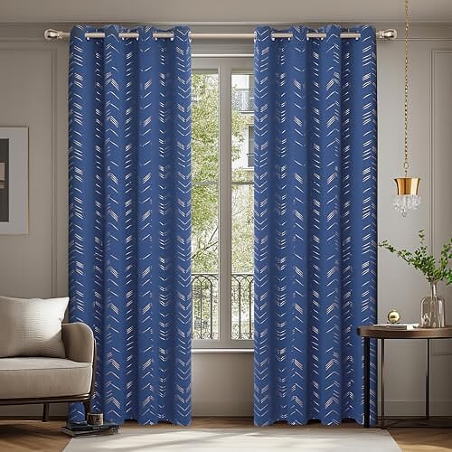 Madison Park Aubrey 2 st panelgardiner, fusksilke, paisleymönster, stångfickgardin för vardagsrum, kök, mörkläggningsgardiner för sovrum och sovsal, 2-pack, 127 x 213 cm, marinblå