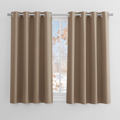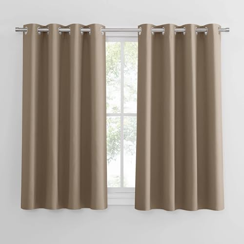 Pony Dance Mörkläggningsgardiner för sovrum, värmeisolerande korta köksgardiner med öljetter, energibesparande gardiner för vardagsrum/hemmakontor, 2-pack, 117 x 137 cm, mocka