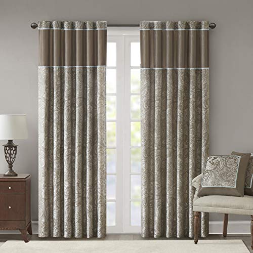 Madison Park Aubrey 2 st panelgardiner, fusksilke, paisleymönster, stångfickgardin för vardagsrum, kök, mörkläggningsgardiner för sovrum och sovsal, 2-pack, 127 x 213 cm, gråbrun