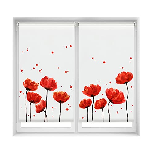 Blindecor Easy Pack 2 mörkläggningsgardiner, utan borrning med mönster - svart digitalt tryck, vallmo 85 x 150 cm (B x H) – tygmått 82 x 145 cm – set med 2 termiska persienner