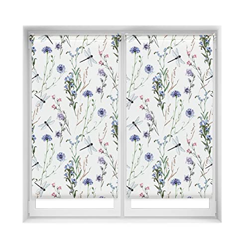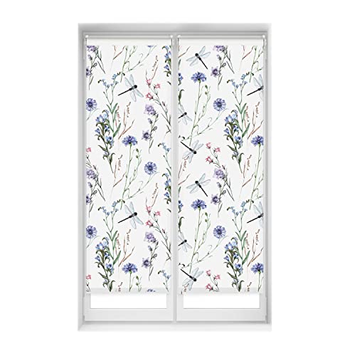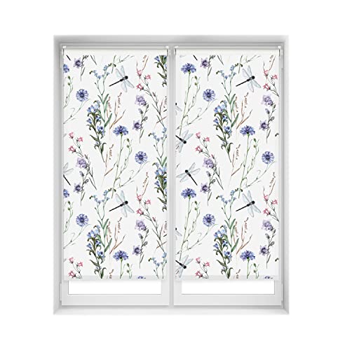 Blindecor Easy Pack 2 tryckta mörkläggningsgardiner utan borrning – Blackout Dragonfly-rullgardin, 55 x 150 cm (B x H) – tygstorlek 52 x 145 cm – set med 2 termiska persienner