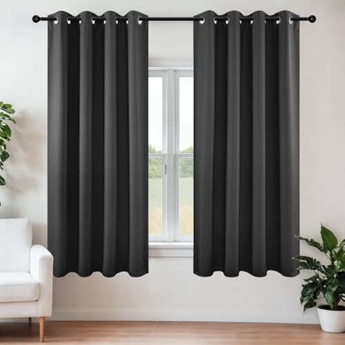 Joydeco Gardiner 163 cm längd för mörkläggningsgardiner för rum grå gardiner, mörkläggningsgardiner 160 cm längd för sovrum vardagsrum, grå kort öljett fönstergardiner