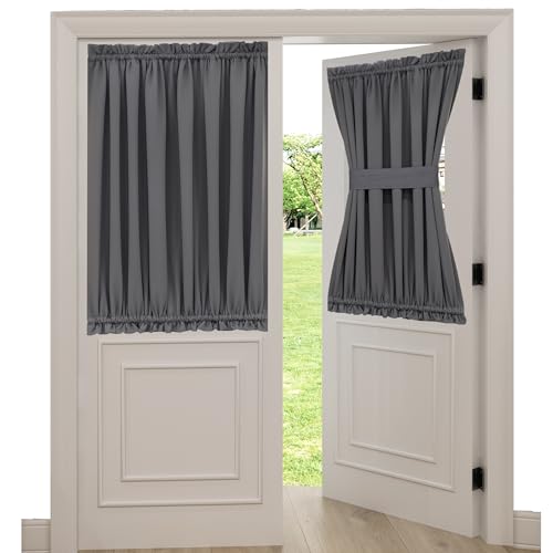 Aquazolax Mörkläggningsstång fickor dörr/fönstergardin bakdörr sidopaneler för integritet – 54 B x 40 L mörkläggningsgardiner för fransk dörr – 1 panel, grå