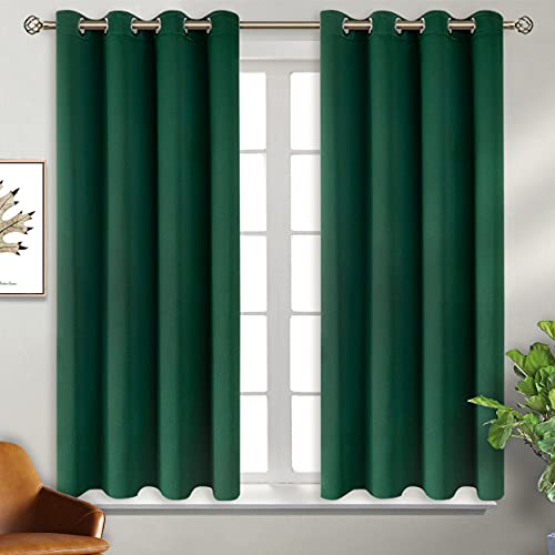 BGment Set med 2 mörkläggningsgardiner med öljetter, termiskt isolerade mörkläggningsgardiner för sovrum, 117 x 137 cm, grön, set om 2