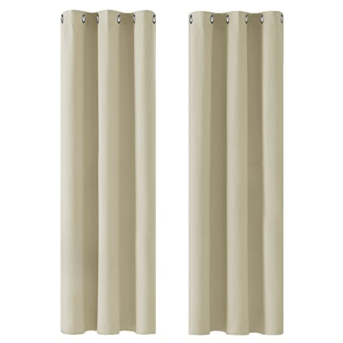 Deconovo Mörkläggningsgardiner med öljetter, moderna gardiner, vardagsrumsgardin, 160x132 cm (höjd x bredd), beige, set om 2